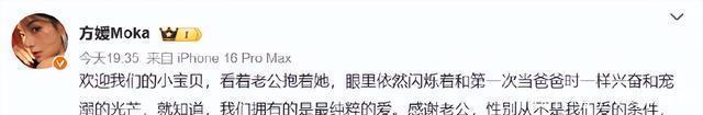 随后方媛也官宣了喜讯,并且对老公的发文补充道: “看着老公抱着她,眼里依然闪烁着和第一次当爸爸时一样兴奋和宠溺的光芒,就知道,我们拥有的是最纯粹的爱。感谢老公,性别从不是我们爱的条件,健康、快乐、善良,才是我们给女儿们最好的礼物。谢谢大家一直以来的关心。”直接用行动传递夫妇两对家的珍视,也消解性别争议!