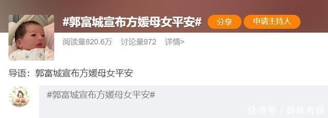 如今郭富城三胎宝宝在今日降生世界! 这倒和方媛早前透露的预产期是“10月末”完全吻合。